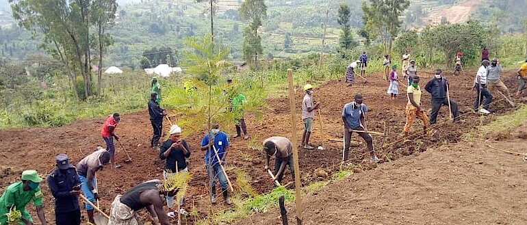 Umushyitsi, abayobozi n'abaturage bafatanyije gusiza ibibanza